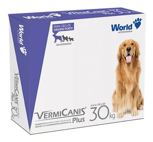 Vermicanis Plus 30 Kg é um medicamento indicado no tratamento de verminoses de cães. Sua ação vermífuga é de amplo espectro, ou seja, consegue combater diversos tipos de vermes, principalmente os da classe de nematódeos (vermes redondos) e cestódeos (vermes chatos). É um produto que garante segurança e eficácia prolongada, atuando contra as formas larvais e adultas dos parasitas. Tem comprimido de fácil aplicação com formato bissulcado, permitindo a divisão exata da dose para os animais.